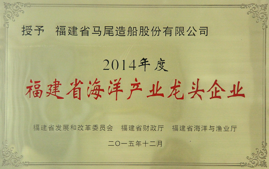 • 馬尾造船榮獲“2014 年度福建省海洋產業龍頭企業”稱號