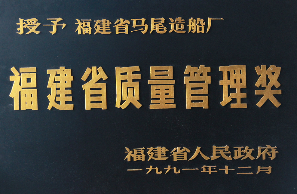馬尾造船榮獲福建省人民政府頒發的“福建省質量管理獎”
