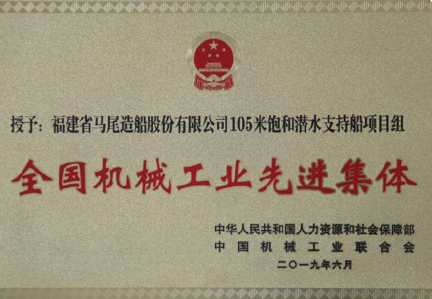 馬尾造船105 米飽和潛水支持船項目組榮獲“全國機械工業先進集體”稱號