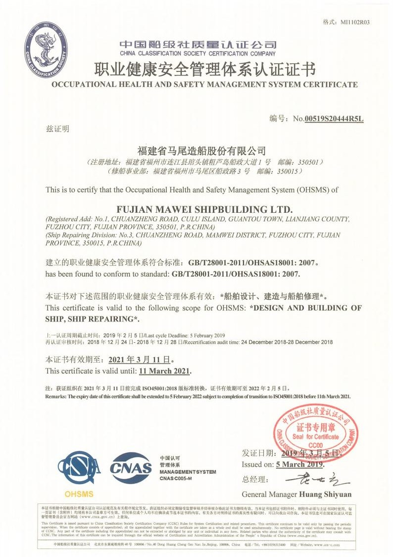職業健康安全管理體系認證證書