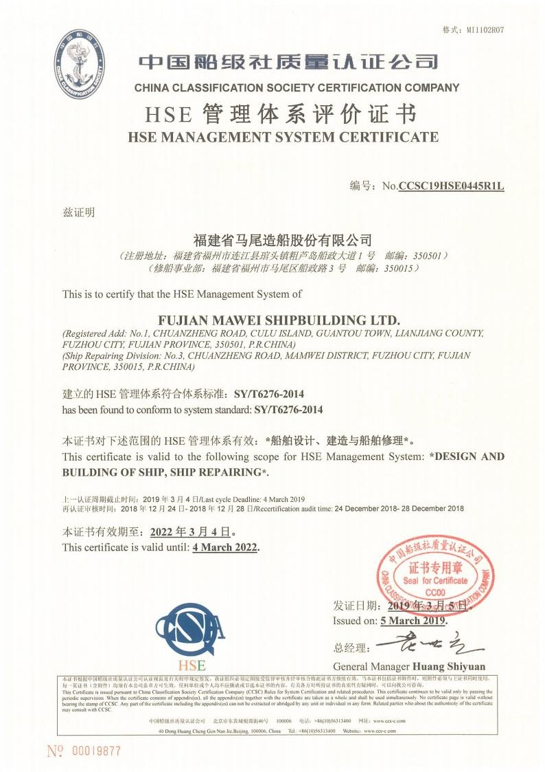 HSE管理體系評價證書