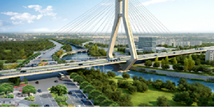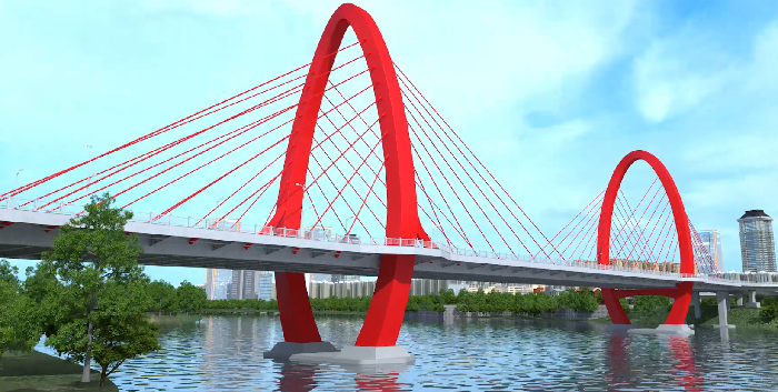 龍巖大橋位于龍巖市中心城區(qū),是龍巖市“一軸二環(huán)三眾四橫”快速道路系統(tǒng)里南北向交通中心軸和景觀軸線。主橋連續(xù)跨越六條城市主干道,施工難度極大,主橋采用不對(duì)稱塔梁同時(shí)轉(zhuǎn)體施工,創(chuàng)造了最大轉(zhuǎn)體重量,最大轉(zhuǎn)體懸臂,最大轉(zhuǎn)體梁寬,最大傾斜角度下塔柱四項(xiàng)世界紀(jì)錄。 -